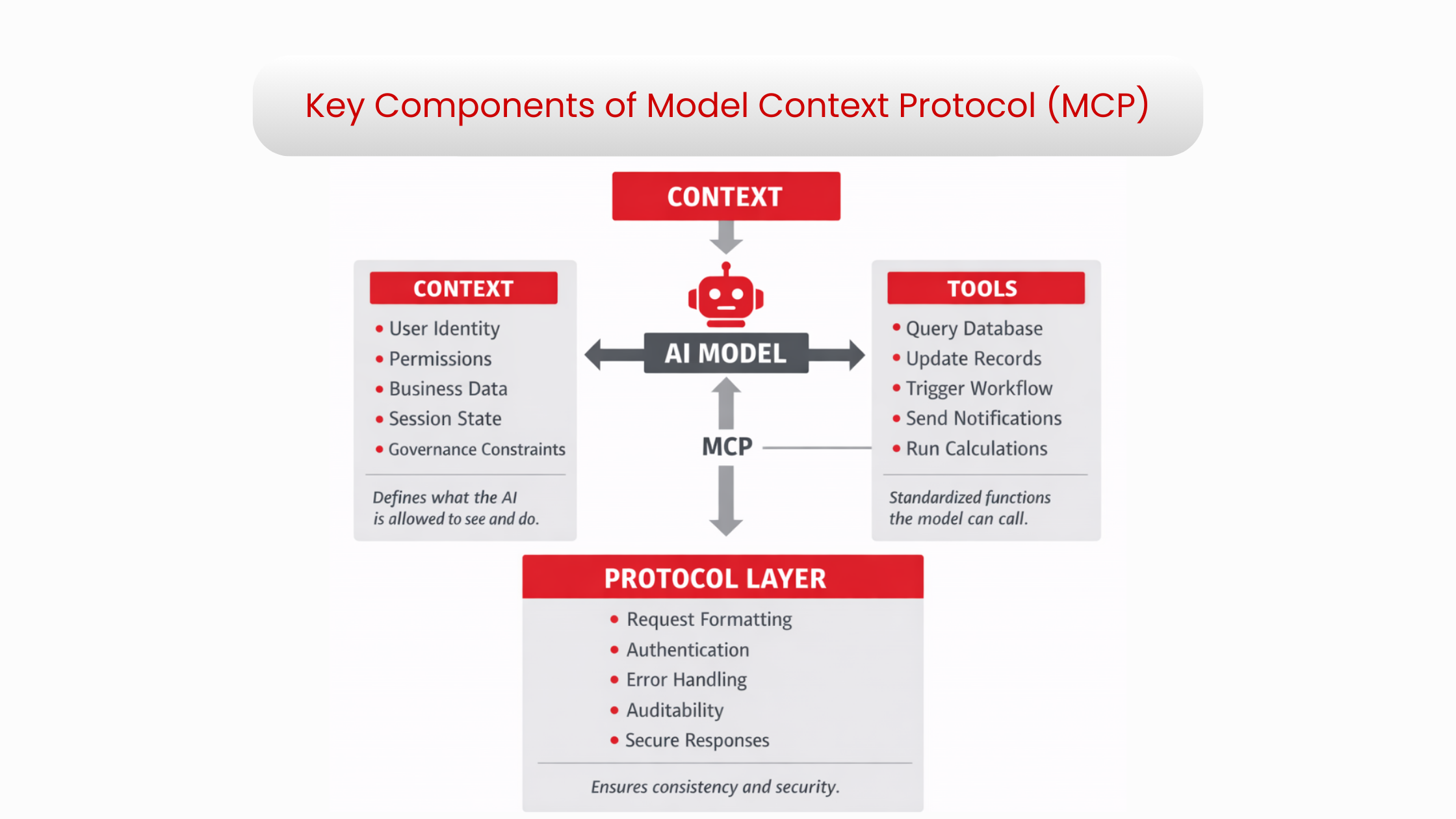 Model Context Protocol (MCP) is a standardized framework that enables AI models to securely access tools, data, and workflows.