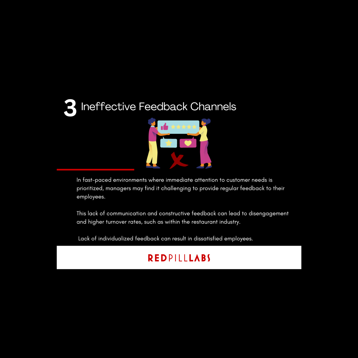 Industries such as the restaurant sector commonly struggle with ineffective feedback channels. In fast-paced restaurant environments, where immediate attention to customer needs is prioritized, managers may find it challenging to provide regular feedback to their employees. This lack of communication and constructive feedback can lead to disengagement and higher turnover rates within the restaurant industry.